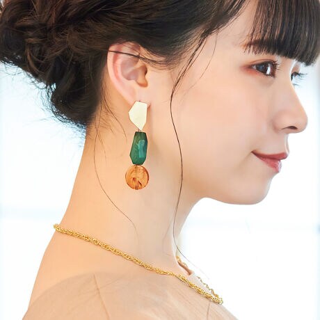 【バイカラーのアクリルが存在感を放つ、ボリュームピアス】