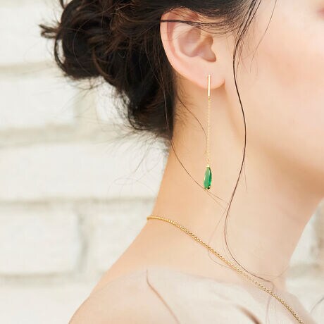 ペアシェイプカットを施した透明感のあるガラスが、光を受けて輝きを放ちます。