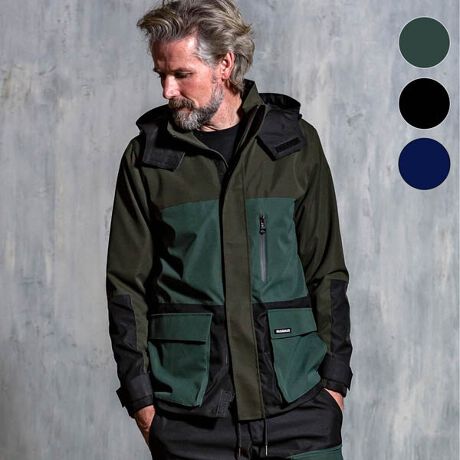 今季トレンドのビッグポケットとカラーブロッキングが特徴的で、アウトドアでスポーティーな面持ちに。