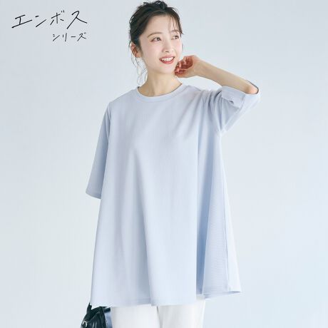 シンプルなデザインで飽きのこない定番エンボスチュニック