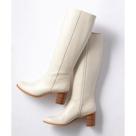美しさと快適な履き心地を兼ね備えたロングブーツです。トゥー部分は上品でやさしい印象のラウンドスクエアに仕上げました。すっきりとした膝下丈で、内側にフルジップが付いているので着脱が楽。安定感のある太めのストレートヒールです。色は定番の黒・茶に、モードを感じさせる白を加えた3色展開です。