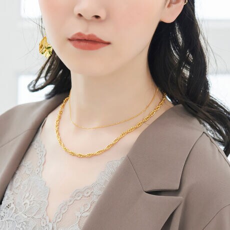 ボールチェーン(40cm)とダブルチェーン(42cm)の2本を組み合わせたチェーンネックレス。