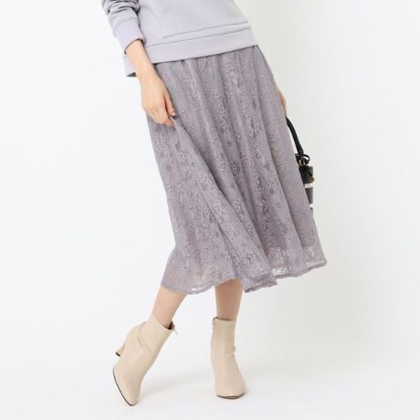 【WEB限定サイズ(LL)あり】レースフレアーミディスカート
