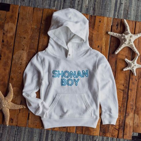 フロントに施した"SHONAN BOY/GIRL"のプリントが目を惹き、ローカル感溢れる一着。