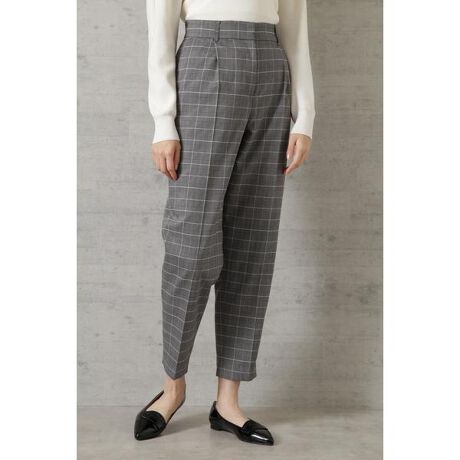 今季の注目トレンド。クラシックでトラッドな雰囲気のチェック柄ペグパンツ。腰位置を高めに設定したハイウエストデザインで、スタイルアップ効果も期待できます。程よくストレッチが効いているから、動きやすく着用感も抜群◎。ブラウスやニットと合わせて、新鮮なスタイリングが楽しめます。裏地付き。