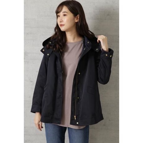 上品な光沢感のあるポリエステルツイル素材を使用したミリタリーブルゾン。裾に向かってほんのり広がるAラインシルエットが女性らしい1枚。着丈はやや長めに仕上げているため、トレンドのマキシスカートとも相性が良く、今年っぽく着ていただけます。取り外し可能なキルトライナーは、単体でキルティングブルゾンとしても着用可能。