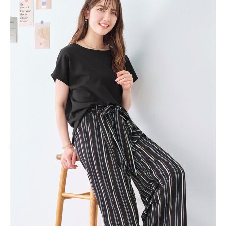 大人女子にぴったりのフレンチスリーブ×ボートネックのきれい見せトップスに。