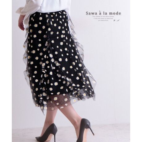 サワアラモードのチュール重なる花柄スカート レディース