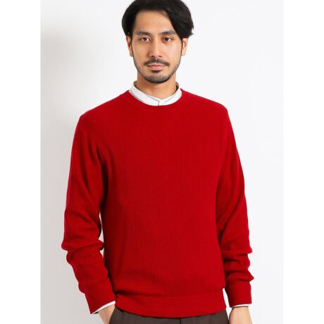 畦コットン100% クルーネックニット
