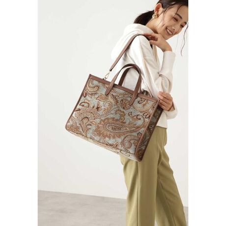 ヴィンテージライクな表情を作り出すスクエアトートバッグ。ジャガード素材にしっかりフチ取りされたパイピングが高見えするデザインです。お仕事にも休日にも必要な小物類を入れられる便利なサイズ感です。秋冬のコーディネートのアクセントになるアイテムです。