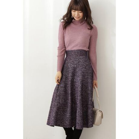 【商品特徴】暖かみのあるモール糸を使用したツイードフレアスカートです。大人な色合いのツイード素材が秋冬にぴったりで上品な印象で着られます。ハイウエストなのでトップスINするとスタイルアップを狙えます。分量のあるフレアなシルエットは歩くと揺れて華やかさをプラスできます。※後ろファスナー付き・裏地付き【スタイリング】ブラウスやコンパクト目なニットまで着回しできます。通勤スタイルはもちろん、休日のきれいめなお出掛けにも活躍します。