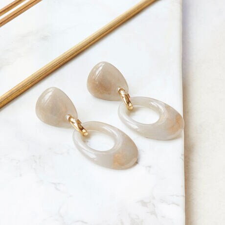 アクリルをゴールドパーツでつなぎ、さり気ない揺れ方がニュアンス感のあるデザイン。