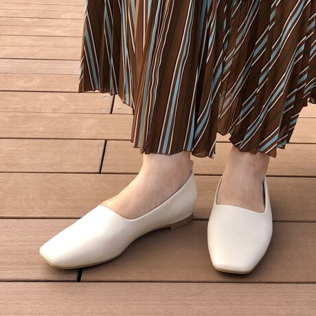 深めの履き口がポイントのすっきりとしたフラットシューズです。