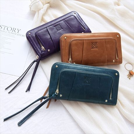 使い続けることでアメ色の光沢が増すイタリアンレザーらしい素材感が最大の魅力のラウンド財布です。
