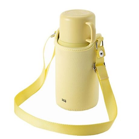 また注ぎ口に直接口がつかないのがうれしいポイントです。注ぎ口はワンタッチ式。カバーケースのストラップは長さ調節が可能です。デザインもシンプルなので老若男女問わずお使い頂けます。