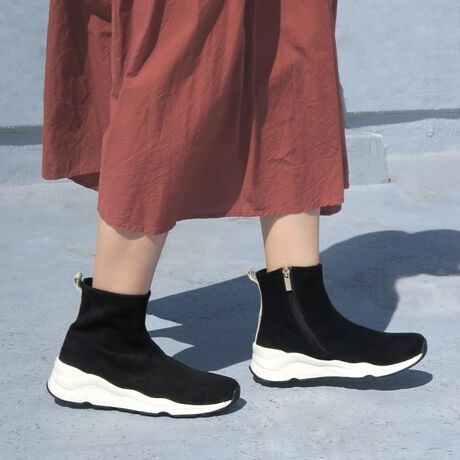 秋冬はこれひとつで過ごしたい…と思うほどに楽ちんさが魅力♪とても軽いので、履くと見た目のギャップに驚くはず…!また内側ファスナーで着脱らくらく◎スニーカーのようなソールで足に負担がかかりにくいのもポイントです。足首をきゅっと細めにしたデザインで、シルエットが綺麗になるように仕上げました。素材が重く見えがちな秋冬のボトムス、タイツにもすっきり合わせやすいです。
