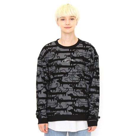 【ユニセックス】レイヤード総柄スウェット/ナガスギルイヌパターン