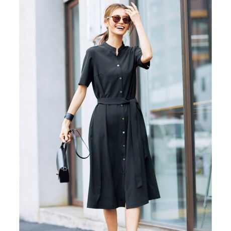きちんと感、楽な着心地、女性らしさの三拍子揃ったワンピースは、オンスタイルの味方。一枚でコーディネートが決まるのも、働く女性の忙しい朝の時間に嬉しいポイントです。トレンドのウエストベルトを添えたフィットフレアなシルエットが女性らしさを高めます。一枚でももちろん、カーディガンやジャケットと合わせてもすっきり着用していただけます。