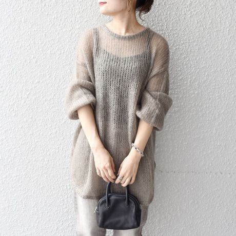 程よい透け感を持たせた、ふくらみとエアリー感のあるローゲージニットです。