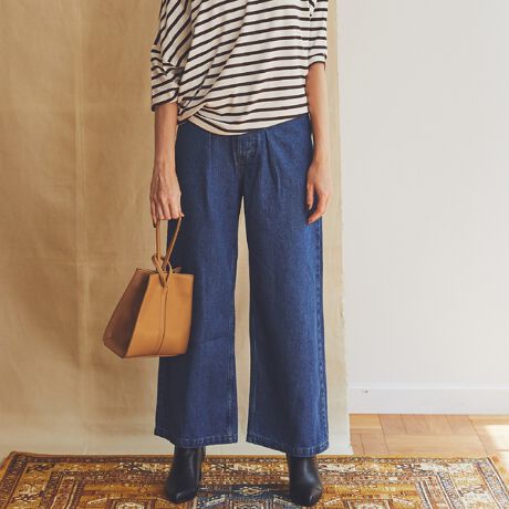 ワイドすぎない絶妙なセミワイド感で大人のこなれ感を演出。高すぎないハイウエストなのでインスタイルもしやすく、足が長く見える縦長効果も◎