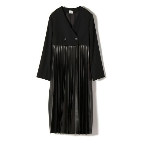 フェイクレザーのプリーツデザインが印象的なコンビコート。