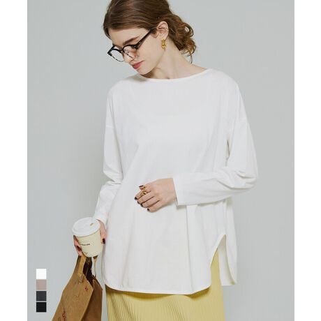 やや浅めのボートネックデザインが、デコルテラインをすっきりと見せてくれます。