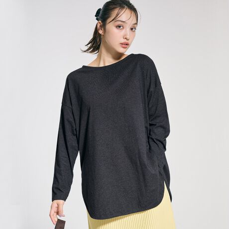 やや浅めのボートネックデザインが、デコルテラインをすっきりと見せてくれます。