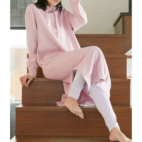 コットン素材のスウェットパーカーワンピース。