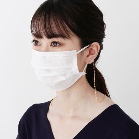 メガネやサングラスにつけて、首から下げることが出来るグラスチェーン。今の時期はグラスチェーンのようにマスクを首から下げられる「マスクチェーン」としてもご使用いただけます。 アクセサリー感覚で取り入れられるだけではなく、マスクを外したりつけたりするシーンでもなくす心配がありません。シルバーにゴールドコーティングを施したスクリューチェーンでお作りしたマスク&グラスチェーンはWEBサイトだけの限定商品です。同じシリーズでベネチアンチェーン(01006)もございます。※フック部分が小さめのお作りのため、幅が広い紐のマスクですとご使用いただけません。グラスチェーンとしてお使いの時は付属のシリコンパーツをご使用ください。