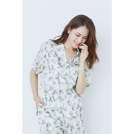 【トップス】ハーフ丈花柄コットンパジャマ スズラン柄 ホワイト