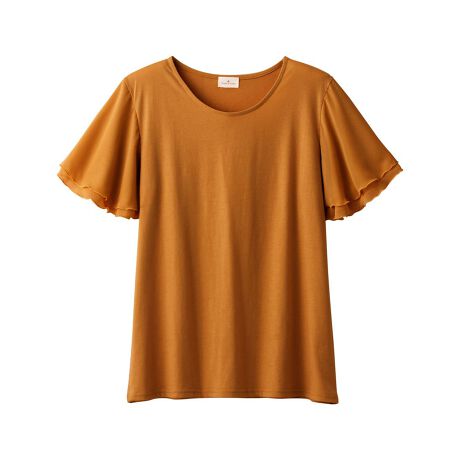 【suzu salalaシリーズ】袖に”ヒラリ”と2枚重ねたシフォンが、定番Tシャツをお洒落にチェンジ。