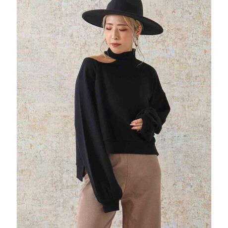 チョーカー風のデザインで、1枚で様になる裏毛素材のトップス。