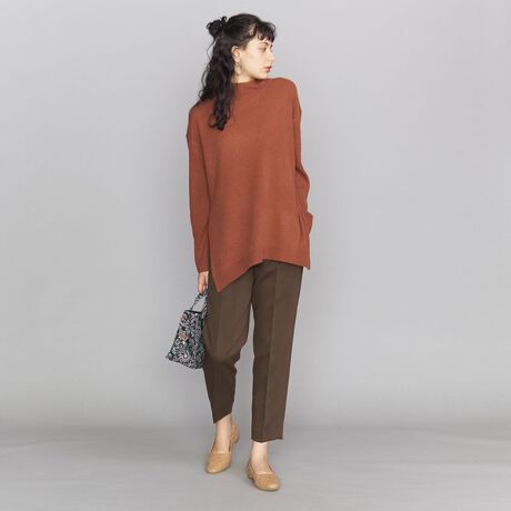 控えめな光沢感がありながら、しっかりとした生地で、カジュアルなカットソーから毛足のあるニットまで好相性です。