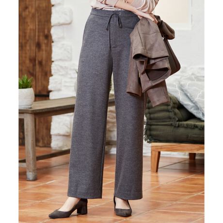【洗える】ウールスムースジャージー リラックスワイドパンツ