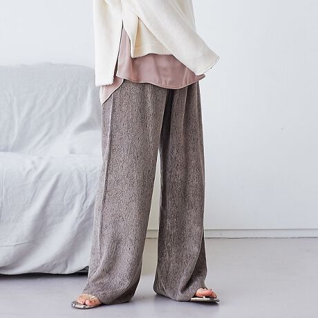 ・落ち感のあるとろみ素材でスッキリとしたパンツラインを表現。