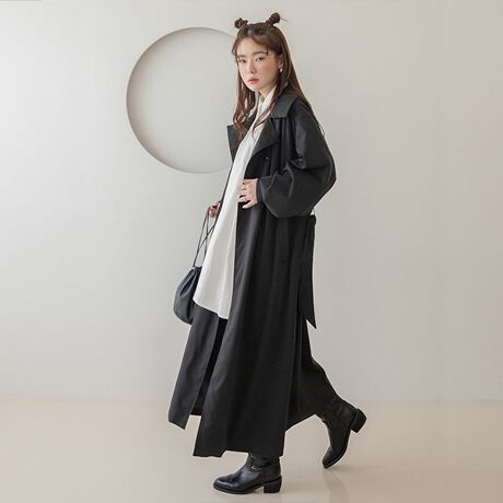 雰囲気のあるムードを演出し、袖と肩全体にシャーリングしわを入れてさらに愛らしいトレンチコートです。