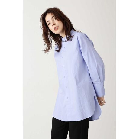 スタイリッシュな雰囲気を醸すバンドカラーシャツ。コットン素材を使用したロングシーズン着られる風合いです。顔周りをすっきり見せてくれるバンドカラー、長めにとったカフスも今季らしいデザインです。ヒップが隠れるチュニック丈、前後差をつけた裾はサイドスリットが入り、アウトスタイルもこなれた印象に見せてくれます。スラックス、トレンドのセットアップのインナーとしても活躍し、ONもOFFスタイルにも便利な1枚です。