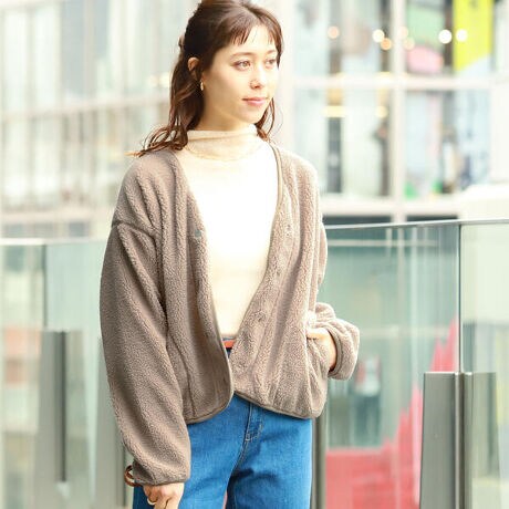 Ray BEAMS / ボア フリース Vネック カーディガン