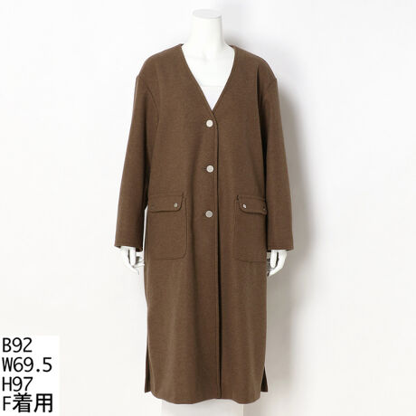 今回発売したのがこちらのウーリッシュノーカラーコートです。