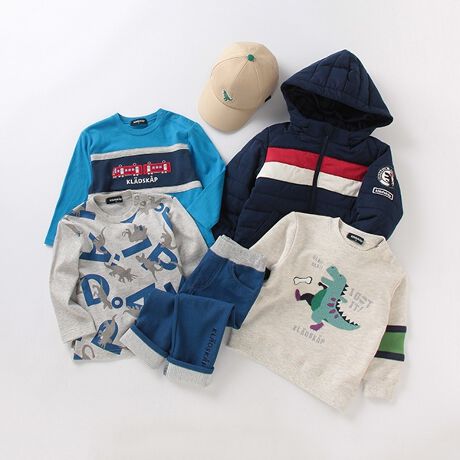 コーディネートが楽しくなるブルゾン、Tシャツ×2、裏毛トレーナー、ロングパンツ、キャップの6点セットです。配色がおしゃれなブルゾンは、中綿入りで保温性をアップ! Tシャツやトレーナーには電車や恐竜をデザインして、遊び心あふれるルックスに。ロングパンツの裾は折り返すとストライプ柄が顔を出し、スマートな雰囲気をただよわせます。腰周りのフィット感が調節できるアジャスターゴムもうれしいポイントです。※セット企画の商品につき、サイズの組み合わせは変更できません。※一部デザイン、サイズ変更が入る場合があります。ご了承下さい。※モデル画像はイメージです。セット内容をご確認下さい。