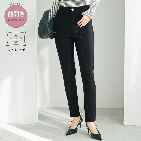 前開き仕様にリニューアルしたストレッチスキニーパンツ。