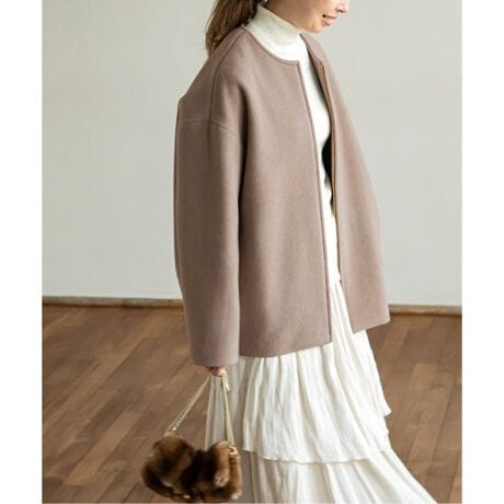 上質素材のショートコートは上品かつ、スタイリングバランスも取りやすい万能アイテムです。