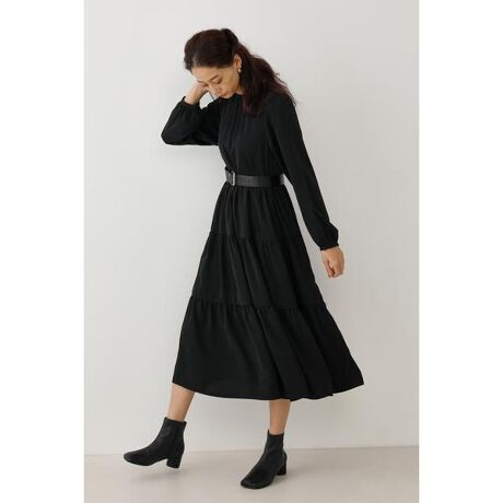 [型番:090DAW33-0380]体にフィットしすぎないシルエットが気になるボディラインをカバーしつつ、ストレスフリーな着心地も魅力のひとつ。広がり過ぎないティアードが大人っぽく落ち着いた印象を与えてくれます。