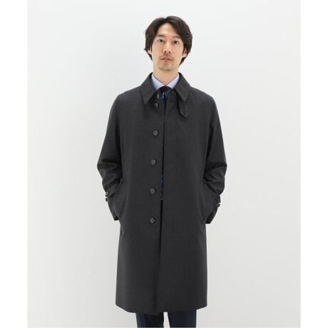 トレンチコートのディティールを省いたシンプルでシャープなベルテッドコート。ロロピアーナのストームシステムの生地を使用しており、扱いやすいデザイン。膝上丈で、ONにもOFFにもコーディネートしやすく汎用性の高い一着です。