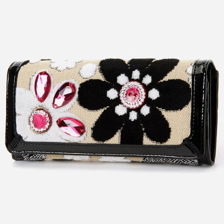 甘くなりすぎないモノトーンのロングウォレットは、どんなファッションにもしっくりと馴染んで、存在感たっぷりのマーガレットが手元を愛らしく彩ります。