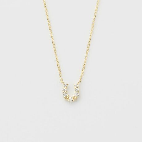 ダイヤだけで構成されているかのような馬蹄のネックレスです。下の3石のダイヤが一番大きく、そこから段々とグラデーションになっていくダイヤがこだわりです。葉をモチーフにした装飾がちょっとした地金感を出し、連なるダイヤの中にゴールドをポイントで差し込んでいます。※天然石や天然素材を使用しているものは、サイズ・色味・風合いの違いや、若干の傷、内包物の有無などに個体差があります。予めご了承ください。