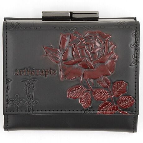 ロリータ/ゴシック/パンク/ゴスロリ/牛革/本革/皮革/レザー/財布/三つ折り/コンパクト/ガマ口/口金/ローズ/バラ/薔薇/フィセル/モノグラム/MADE IN JAPAN