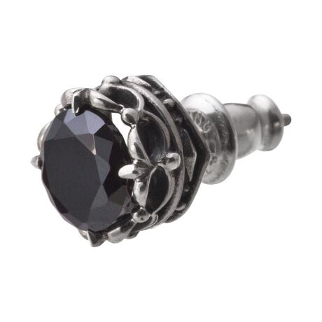 大振りのブラックジルコニアをセットした王冠モチーフのスタッドピアス。耳元のアクセントにおすすめです。※1個売り(片耳分)。【片耳用】[型番:AKE0036]
