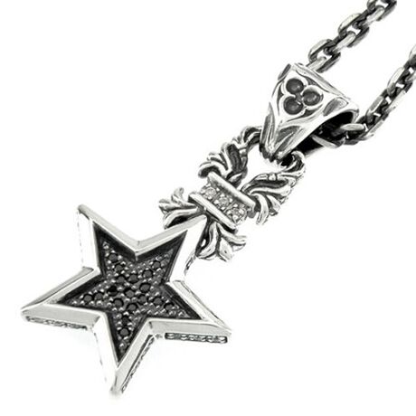 モノトーン色のスターペンダント。漆黒とクリアのジルコニアをふんだんに敷き詰め、銀のフレームに収めた星型は、角度を変えるたびに異なる光を放ちます。トップを繋ぐバチカンにはトレサリー装飾と植物モチーフを重ね、装飾的でありながらも気品あるアクセントに。繊細な彫り込みと煌めきのコントラストがアート性を際立たせています。アトリエ工房で熟練職人が一点ずつ丹念に仕立てたSV925は、燻しの深みと銀の艶やかな輝きを見事に調和させ、身に着ける人のスタイルを格上げ。日常に洗練を添え、特別な場面では唯一無二の個性を輝かせる、まさに“装うアートピース”です。