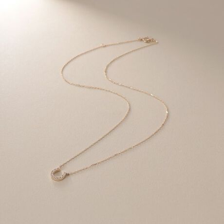 幸運を呼ぶと言われる馬蹄モチーフに、小粒のダイヤをあしらった上品さの漂うネックレスです。